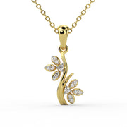Exude grace and sophistication with our Blossom Elegance Diamond Pendant, a breathtaking fusion of nature-inspired artistry and refined luxury. Crafted in 18K Gold, this exquisite piece features two delicately designed floral motifs, each adorned with brilliant round-cut diamonds, set to perfection. The fluid, vine-like structure symbolizes growth and elegance, making it an ideal accessory for both everyday wear and special occasions.